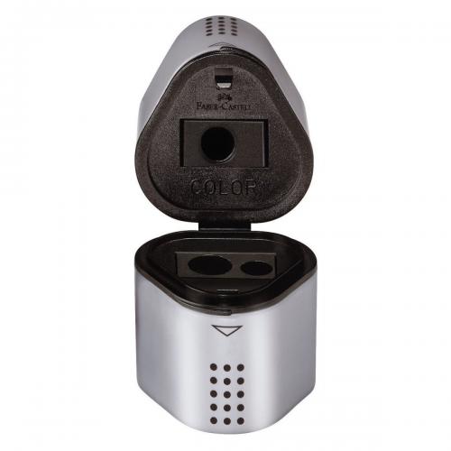 El diseño clásico de Grip se extiende también al mundo de los afilalápices. Su popular forma triangular con puntos de agarre garantiza una excelente ergonomía. Los afilalápices con depósito quedan igual de bien en las mochilas escolares como en los escritorios de los más mayores gracias a su clásico color plateado y a la opción de tenerlo en alegres colores.